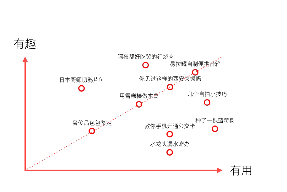 而这种需要,映射到内容上,就是创作者们最熟悉的“有趣”和“有用”。来看所长做的一个象限图▼,大家会发现,本期上榜内容都在这个象限里徘徊。