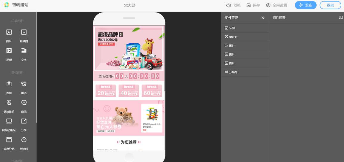 自定义创建-页面编辑-营销组件